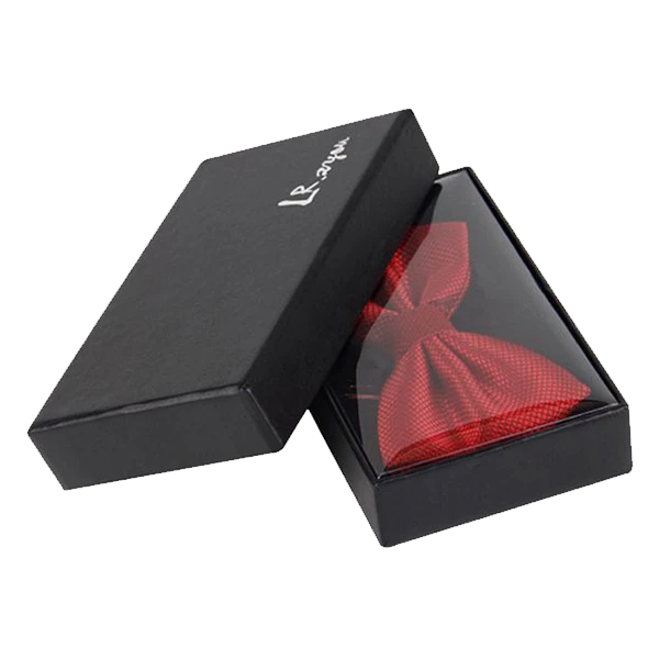 Bow ties are loved by many as it enhances the look of a person wearing tuxedo, that is why various clothing brands are already selling their variety of bow ties, how do you draw attention of style conscious customers towards your bow tie make them distinct among competitors when placed on shelves of apparel stores, attract customers to pick them from various available choices, and ease their selection process? Custom bow tie boxes are perfect to grab attention of tie lovers towards your bow tie, compel them to stop and stare, make them more significant, and give a quick look at your bow tie. Obtaining such custom bow tie boxes is simplified and straightforward with the eclectic designers of Emenac packaging as they are well-aware about latest packaging trends, know what customers look for when buying bow ties. These designers combine this knowledge & creativity with their years of expertise to assist you in selection of innovative shapes & appearance-enhancing add-ons from available library to design these custom bow tie boxes that become great to captivate attention from afar, leave magnificent first impression on onlookers and offer a direct preview at inside packed bow tie. For example, pick square shape to attract spectators at very first sight and temp style conscious customers to purchase your bow ties. Opt for rectangular shape to enthrall customers during their shopping spree and provide prominent visual appearance of your bow tie among various similar products. Add window to give a sneak peek at your bow tie, allow tie lovers to relish style, and influence their buying decision.